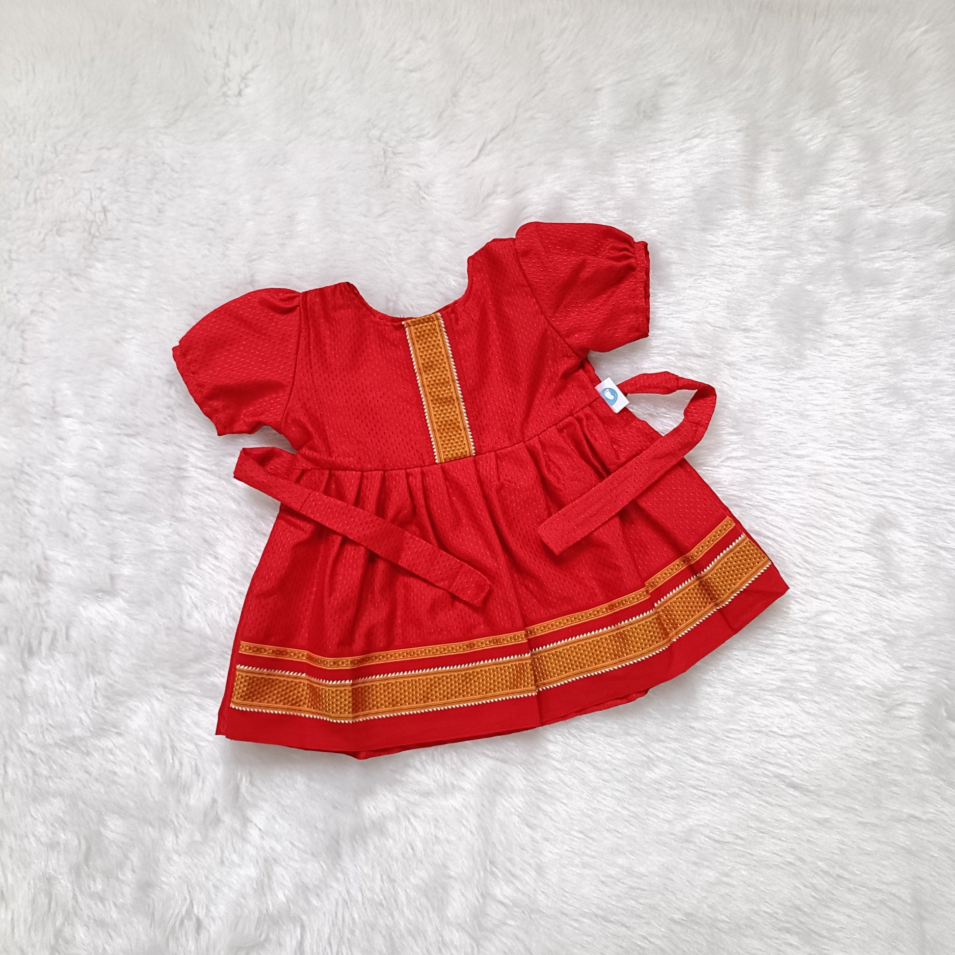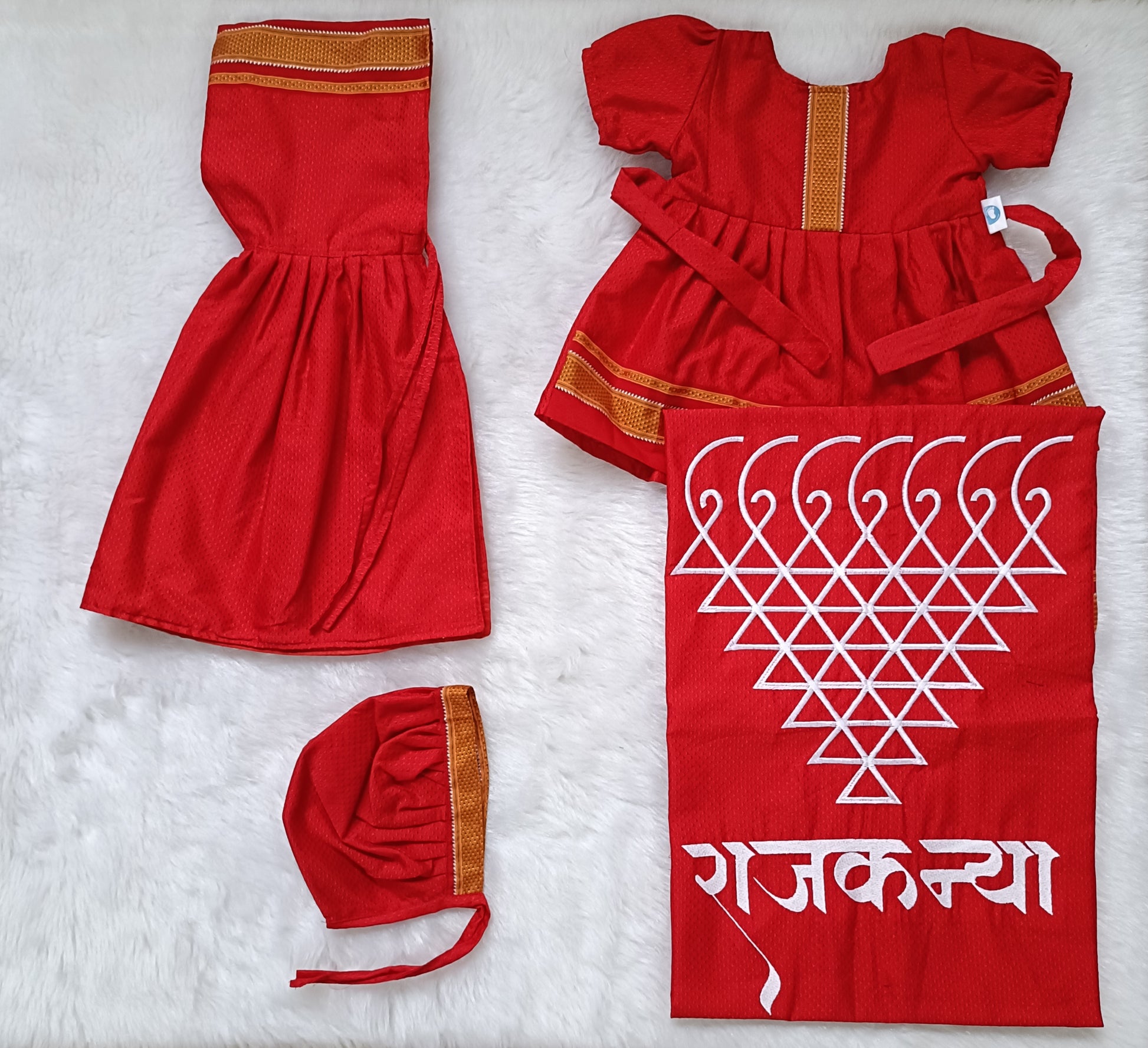 Complete with a beautiful thread machine embroidery motif on the holding, this versatile outfit is ideal for a naming ceremony, theme photoshoot, or any special occasion. The vibrant colors and traditional textures will add an extra touch of elegance and charm to your baby’s look, making them stand out in every celebration.